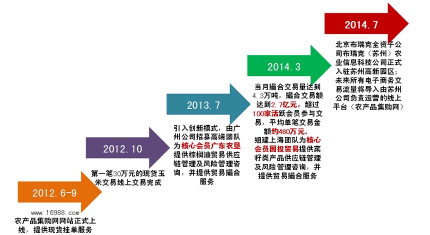 农产品集购网(www.16988.com)是中国大宗农产品电子商务及第四方物流服务第一品牌,是一家“综合农业信息化与金融技术服务”的提供商,是由心博在线手机版(大中国区)环球(北京)信息技术有限公司开发的一个农产品专业网站,也是心博在线手机版(大中国区)农业咨询公司全资子公司。公司成立伊始,就致力于为中国农业产业链的增值,提供科学、精准、简捷的专业服务,集合了“资讯平台、数据平台、电子商务、PHC”四大模块,打造一个综合的大宗农产品第四方物流服务系统。目前,公司业务已覆盖白糖、棉花、大豆、玉米、小麦、豆油、棕榈油、菜籽油、早籼稻、生猪、天胶等十余个种类,拥有数万家注册企业。